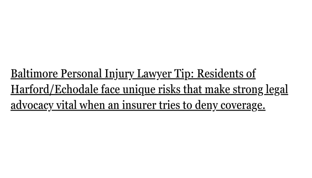 - Maryland’s strict insurance laws mean residents of Harford/Echodale need a strong advocate who understands both the community and the insurance companies’ tactics.