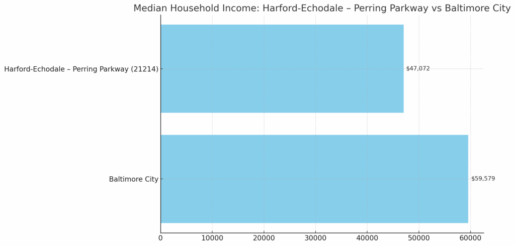 Harford/Echodale is notable for its stability: many families have owned their homes for generations, and the majority of properties are single-family rowhouses or small detached homes built before 1960. According to Baltimore City Planning data, the 21214 ZIP code has a higher rate of owner-occupied housing than some nearby areas, though rental properties have been on the rise in recent years.